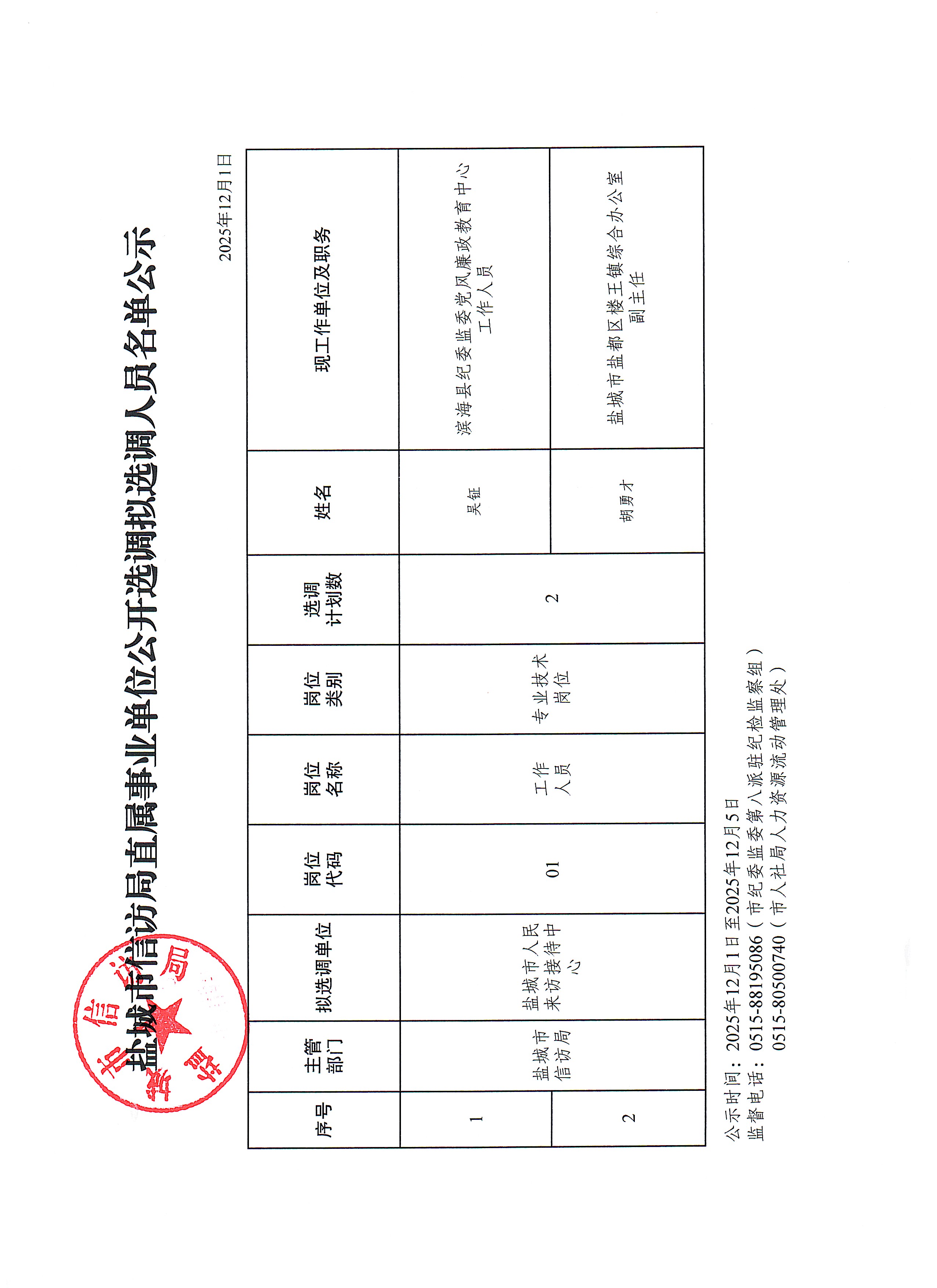盐城市信访局直属事业单位公开选调拟选调人员名单公示